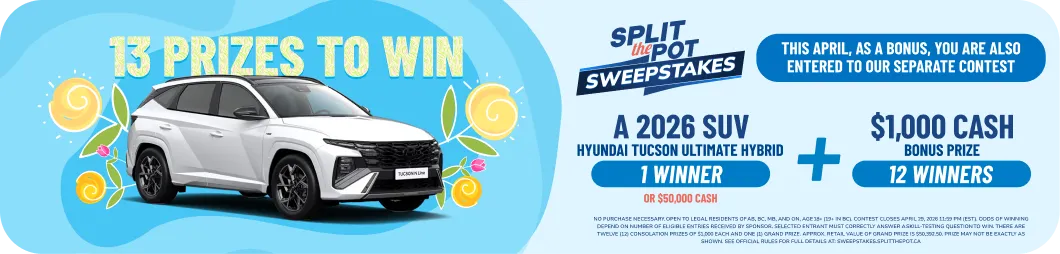 Become a Split the Pot Member and be entered for a chance to win a BONUS draw of $2,000 cash!